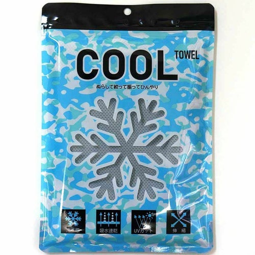 濡らして絞って振るだけでひんやり!接触冷感クールタオル!約30×90cm 専用袋入り